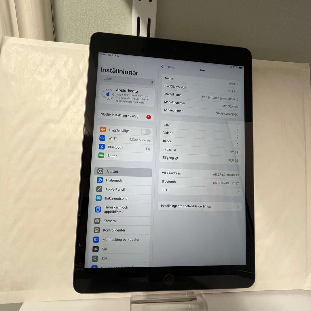- iPad (2020) 8th gen 10.2″ 32GB Wi-Fi – 6 mån garanti